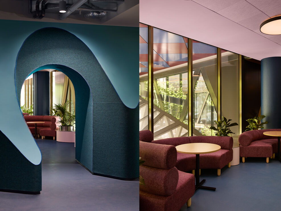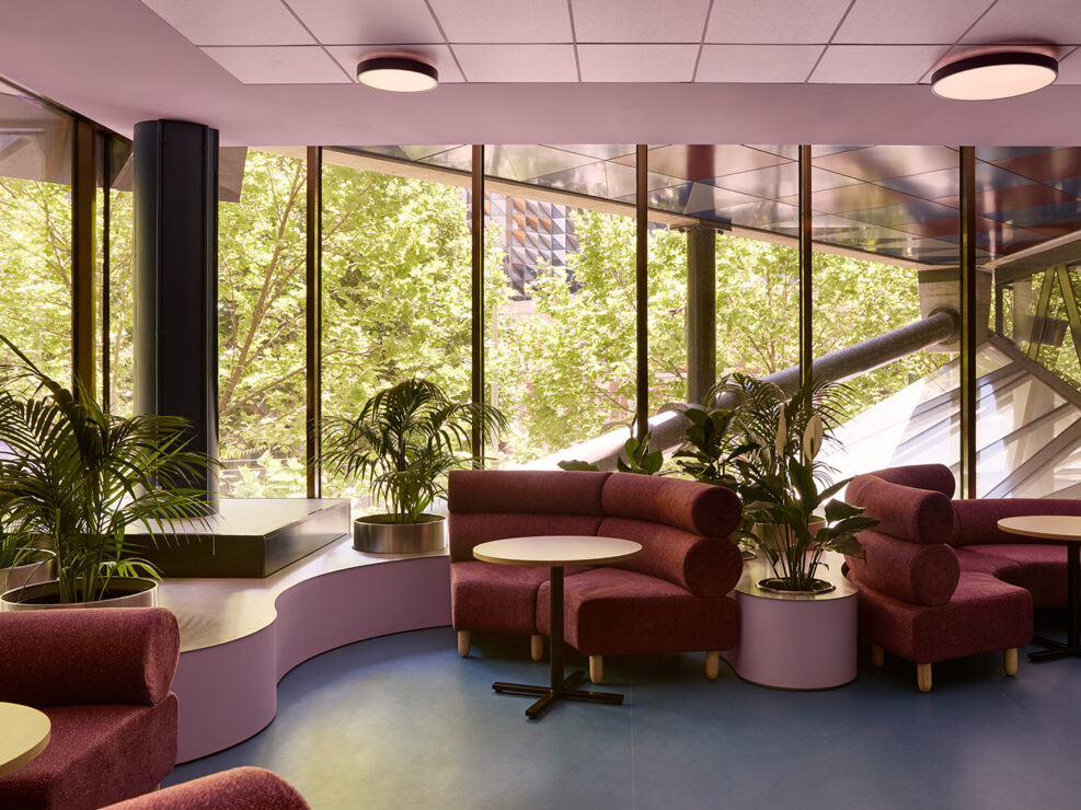The legacy of Peter Corrigan and Maggie Edmond at RMIT is most honoured in Building 8, a patterned extravaganza overlooking Swanston Street. This blue threshold transitions students from the main foyer into a calming wellbeing sensory space.